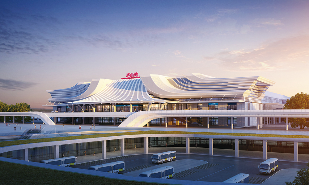 廬山站位于江西省九江市柴桑區沙河街鎮,站房建筑面積6萬平方米,生產生活房屋總建筑面積1.9萬平方米,站場規模為8臺25線。項目建成后,將成為承載城市商業、文化、娛樂等復合功能在內的立體性、綜合性交通樞紐。