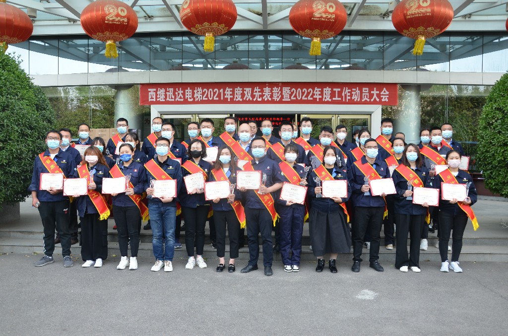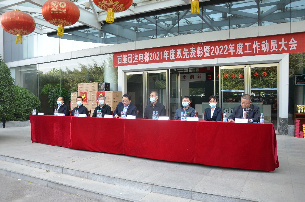 4月22日下午,西繼迅達電梯2021年度雙先表彰暨2022年度工作動員大會在公司辦公樓前隆重召開。公司領導劉金忠、劉剛、李國鈞、陳衛東、宋巨川、于銘生、包建甫、范良勇在主席臺就座。