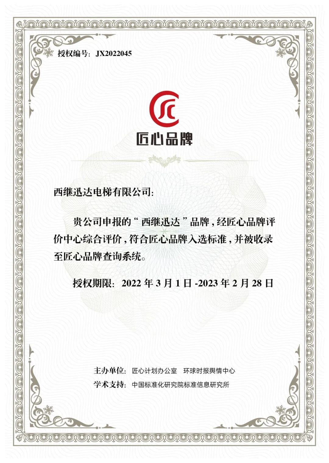 據(jù)悉,本次評價于2021年11月30日啟動,歷時三個月,共評價品牌296個,該次評價涵蓋了家居建材、家用電器、工業(yè)制造等多個行業(yè)領(lǐng)域,其中122個品牌成功入選。最終,西繼迅達得到主辦方的高度肯定,與華為、小米、海爾、安踏等多家知名企業(yè)共同入選匠心品牌榜,并被收錄至匠心品牌查詢系統(tǒng)。