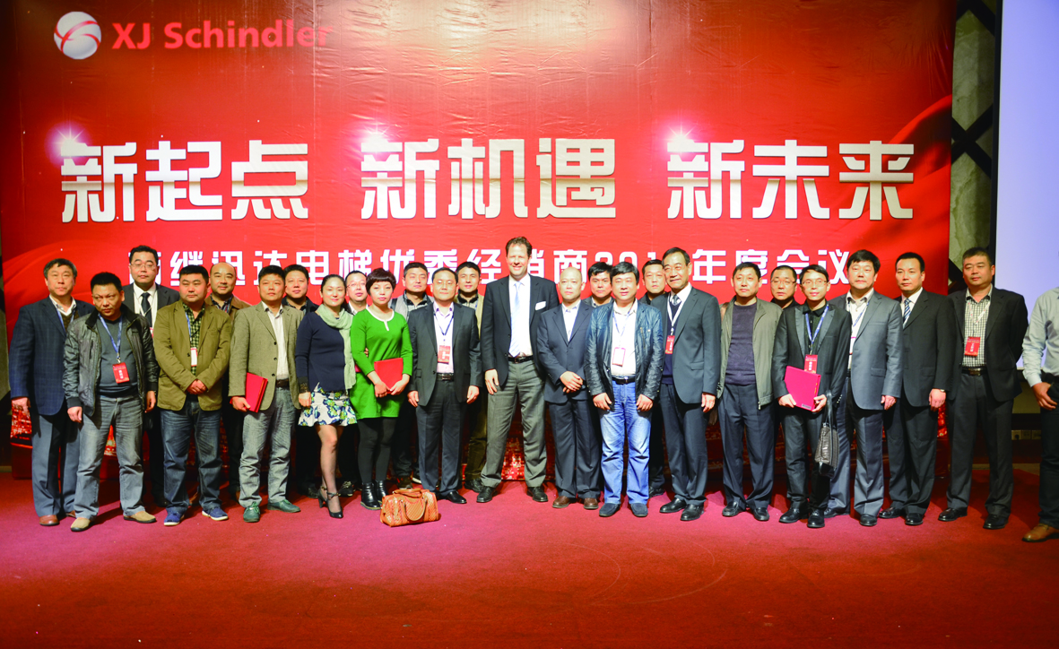會上,公司副總經理陳衛東首先向遠道而來的各位優秀經銷商表示熱烈地歡迎。他說,2013年我們萬眾一心,團結奮斗,超額完成了年初制定的各項經營目標。我們肩負著彼此的責任,勇于進取,開創出了輝煌的銷售業績。經過十余年的打拼,西繼迅達電梯的整體水平已經邁上一個更高的平臺,同時這也將是我們一個嶄新的起點。展望2014,我們有著更多的機遇和挑戰,企業在組織機構、產品、服務、管理上,進行了更深入優化,給各位經銷商朋友營造更好更高的發展平臺。同時西繼迅達將進一步整合各方資源,集結自身優勢,加大服務力度,全力打造“最安全的電梯”!相信通過大家的不懈努力,2014年又將是我們成功的一年、輝煌的一年!
