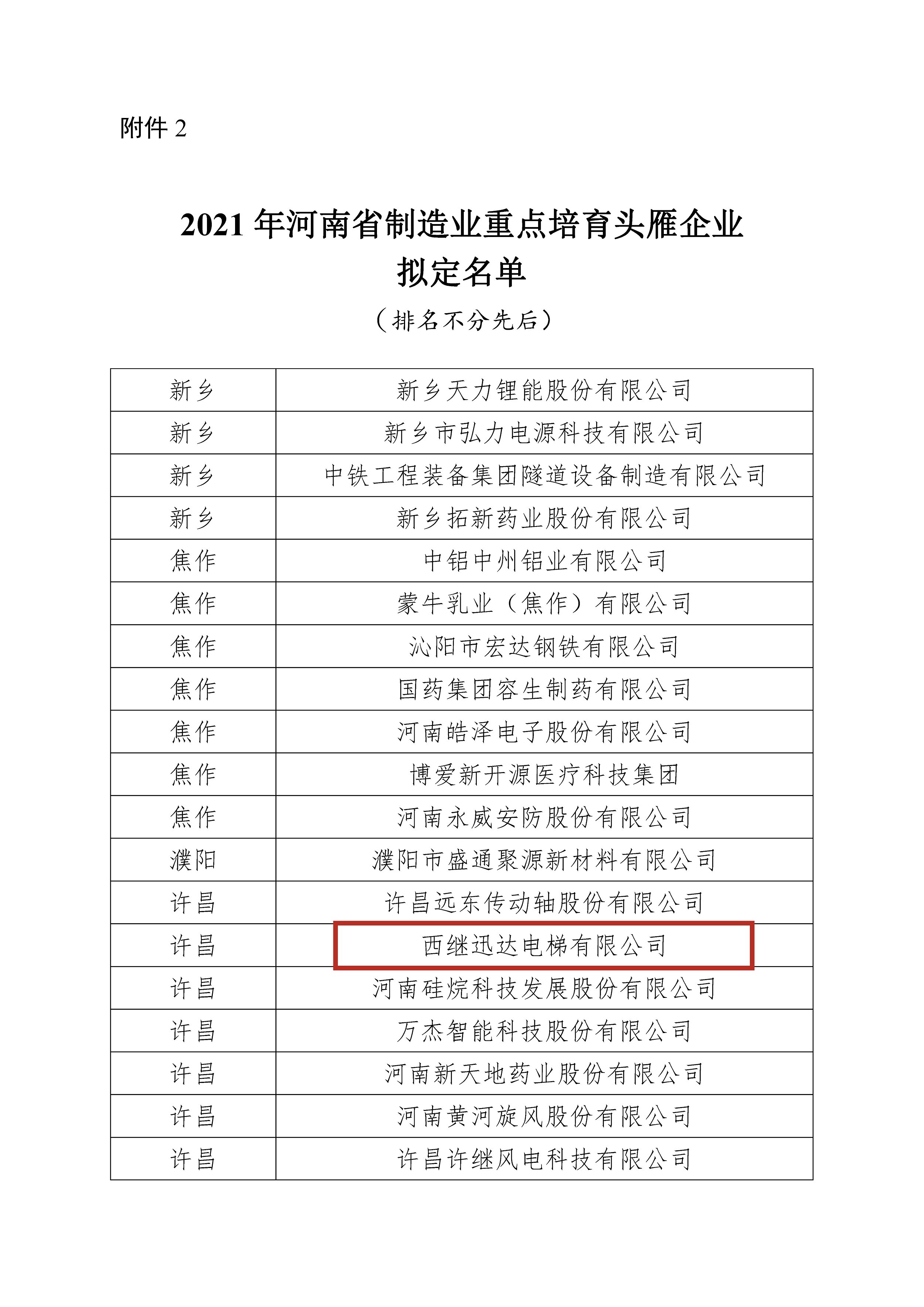 西繼迅達根據《河南省制造業頭雁企業綜合評價管理辦法(試行)》(豫工信規〔2021〕78號)和《河南省工業和信息化廳關于開展2021年河南省頭雁企業申報工作的通知》(豫工信辦規〔2021〕115號)工作程序和有關要求,積極籌備申報資料,經我市工信部門推薦、省工信廳組織專家進行材料評審,公司憑借在各個方面的精彩表現,被擬認定為河南省制造業重點培育頭雁企業。 入選“河南省制造業重點培育頭雁企業”是對西繼迅達發展成果的充分認可,公司將以此為契機,充分發揮頭雁企業在融通發展中的帶動作用,推動公司高質量發展,為我市經濟發展貢獻力量。