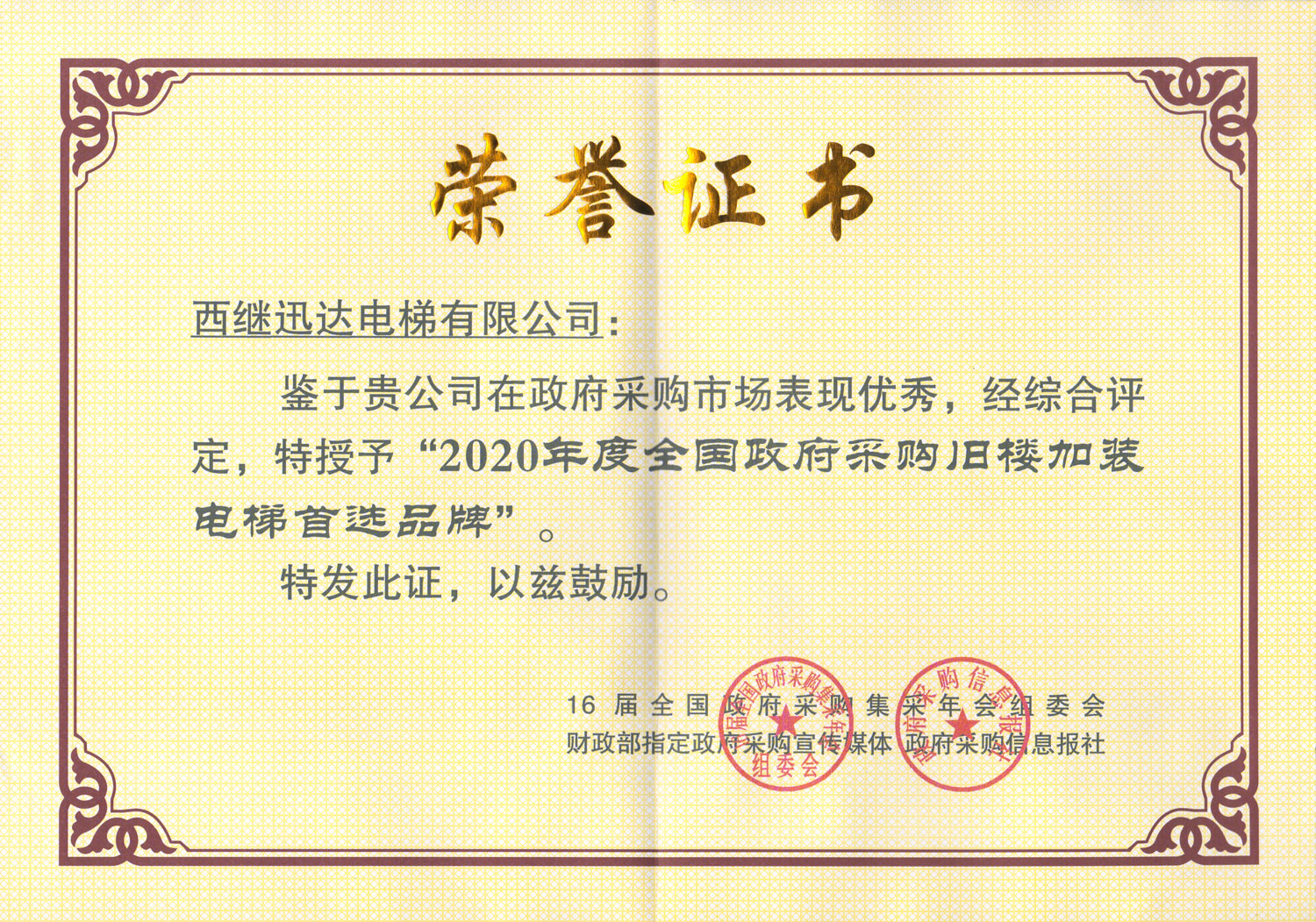 西繼迅達電梯在眾多參評整梯供應商中脫穎而出,蟬聯(lián)年度“全國政府采購電梯十佳供應商”、“全國政府采購電梯服務十強供應商”獎項。此外,西繼迅達還憑借在舊樓加裝電梯市場的精彩表現(xiàn),榮膺“全國政府采購舊樓加裝電梯首選品牌”。三項行業(yè)大獎的獲得,充分印證了行業(yè)專家和政采市場對西繼迅達的高度認可和充分肯定。