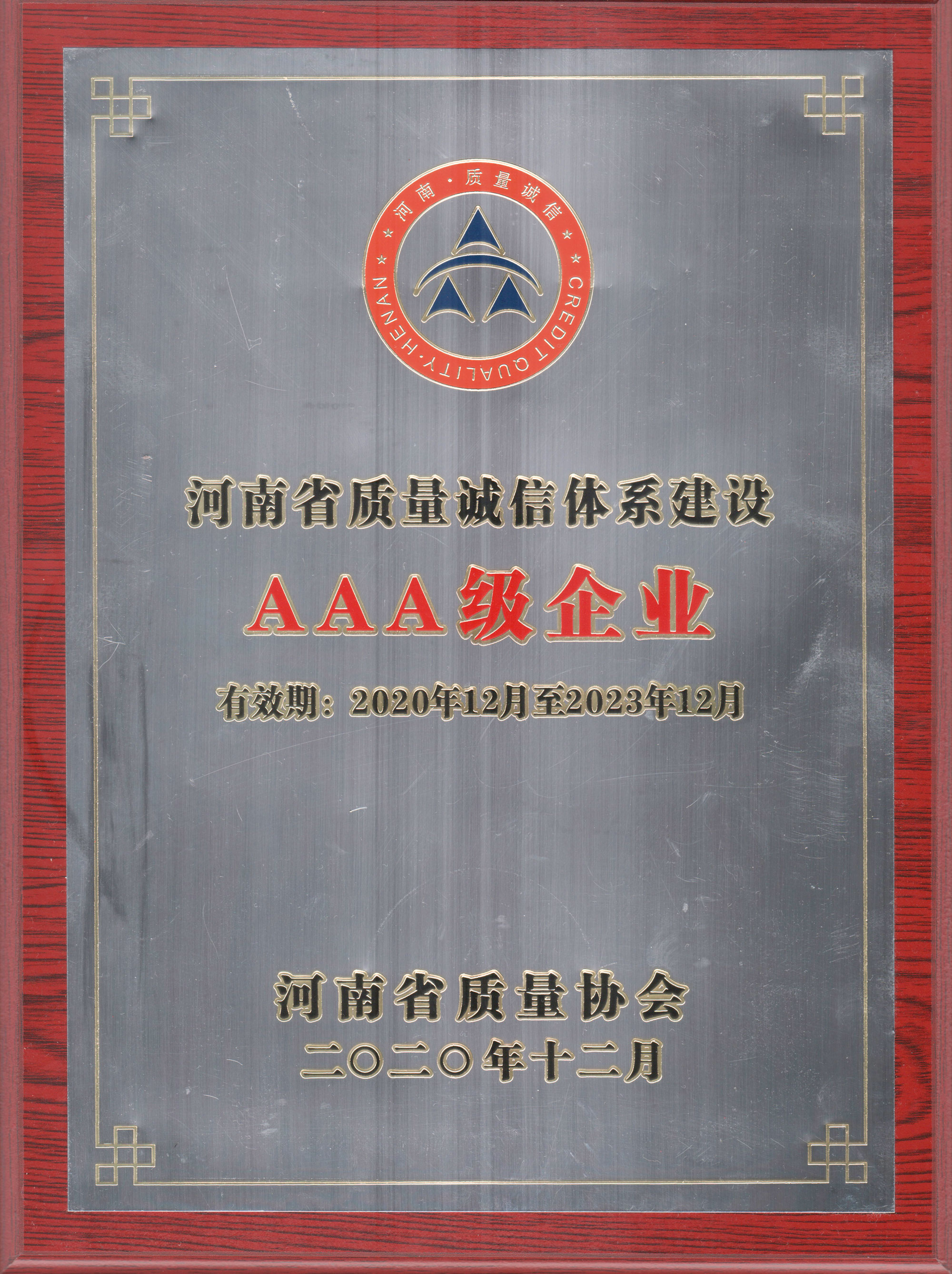 河南省質量誠信企業評估分為 AAA 級、AA級、A級企業,字母數量越多,表示質量領域信用水平越高。該稱號對企業自覺增強自身質量誠信意識,提升產品質量,增強企業的市場競爭力有極大的促進作用。西繼迅達是于2015年12月份被河南省質量技術監督管理局認定為“河南省質量誠信AAA級企業”,2018年通過復評審。2020年下半年,公司積極籌備復評審相關資料,通過上報復審資料、質量誠信等級評估、專家最終審核等程序,最后省質量協會認定西繼迅達信用良好,相關評價較高,產品質量穩定,持續認定為AAA級企業等級。