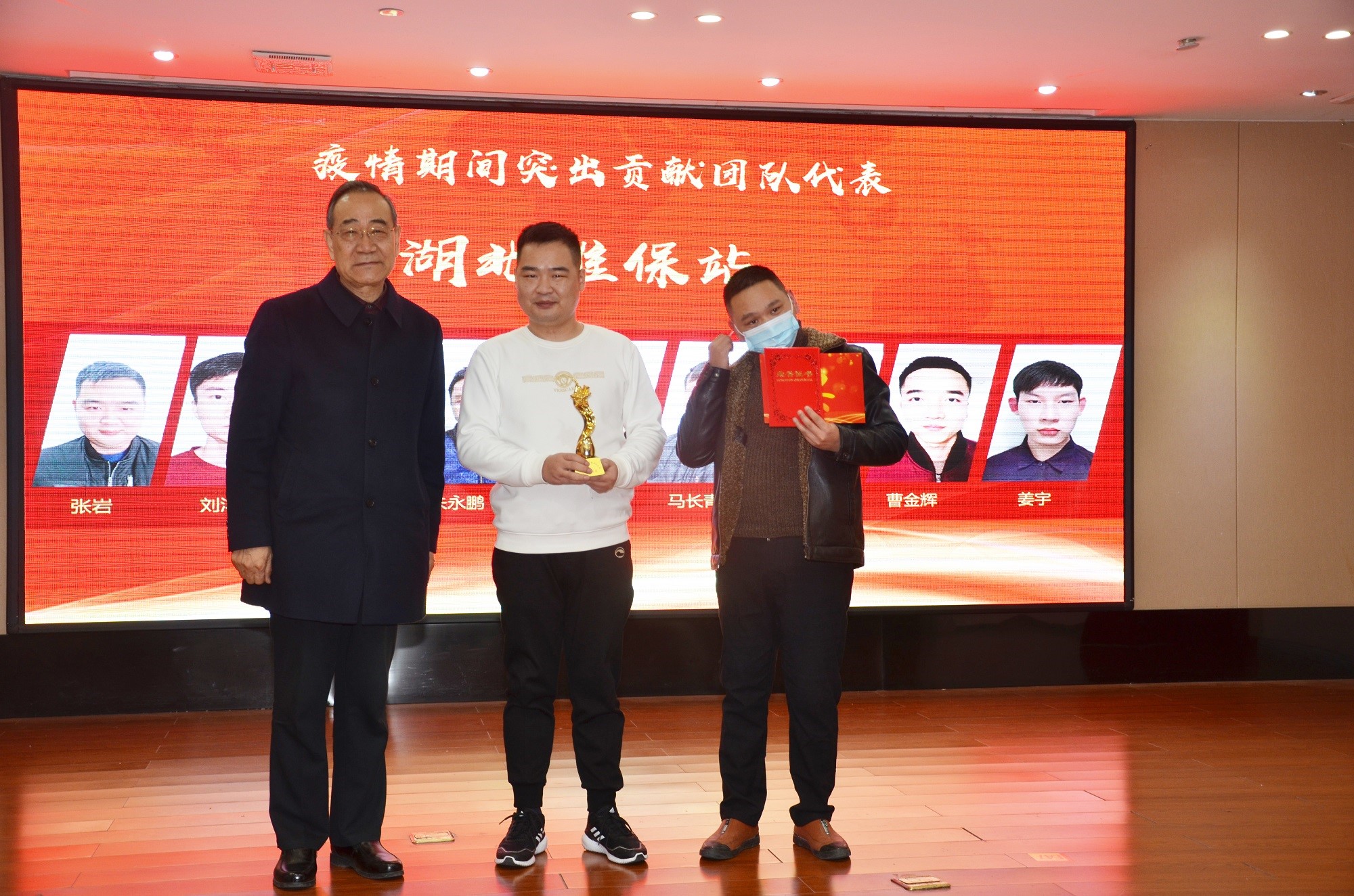 會上,公司劉董事長親自為獲得疫情期間特殊貢獻(xiàn)獎的湖北維保站頒發(fā)獎杯及榮譽證書。