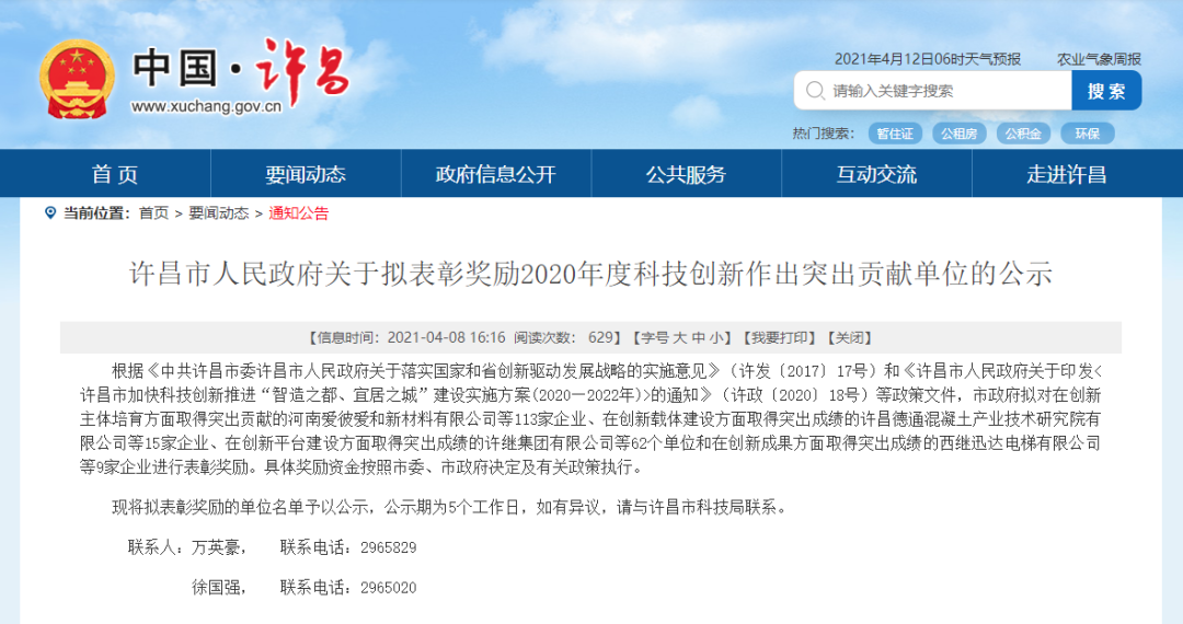 西繼迅達電梯等企業(yè)擬受許昌市人民政府重獎!