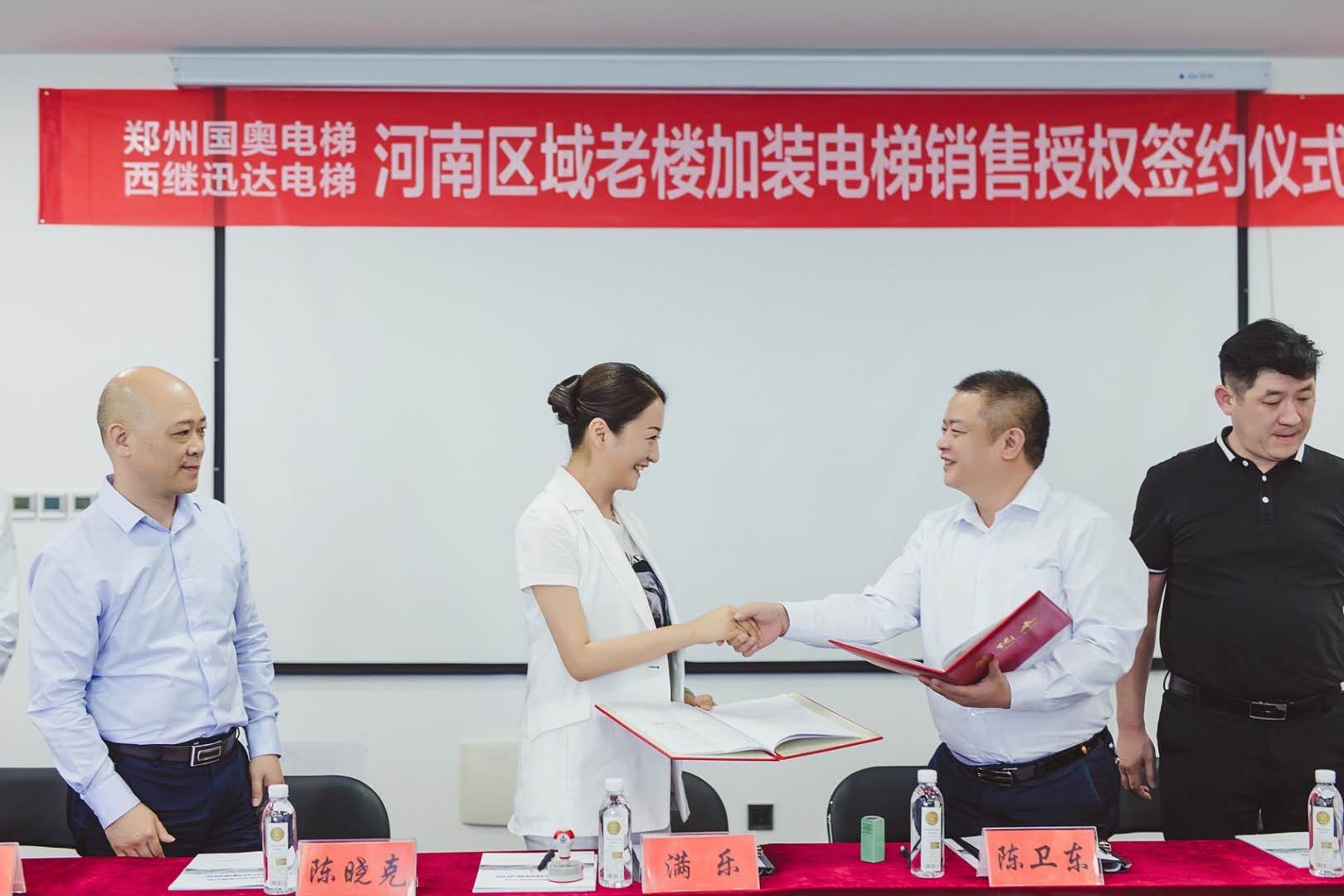 公司與鄭州國奧電梯進行河南區域老樓加裝電梯銷售授權簽約