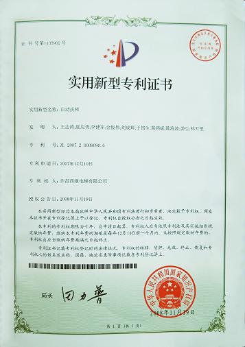 公司自動(dòng)扶梯獲國(guó)家實(shí)用新型專利證書(shū)